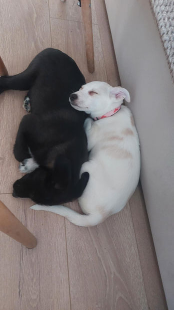 Maxi ist welpentypisch verspielt, läuft noch tapsig durch die Welt, alles wird in den Mund genommen und gerne auch mal der ein oder andere Schuh verschleppt und zerkaut.