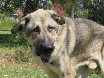 Monte wurde ausgesetzt auf der Straße gefunden. Mit seiner Größe und Masse ist er erstmal beeindruckend, bei näherem Kennenlernen dann allerdings beeindruckend gut im Kuscheln.